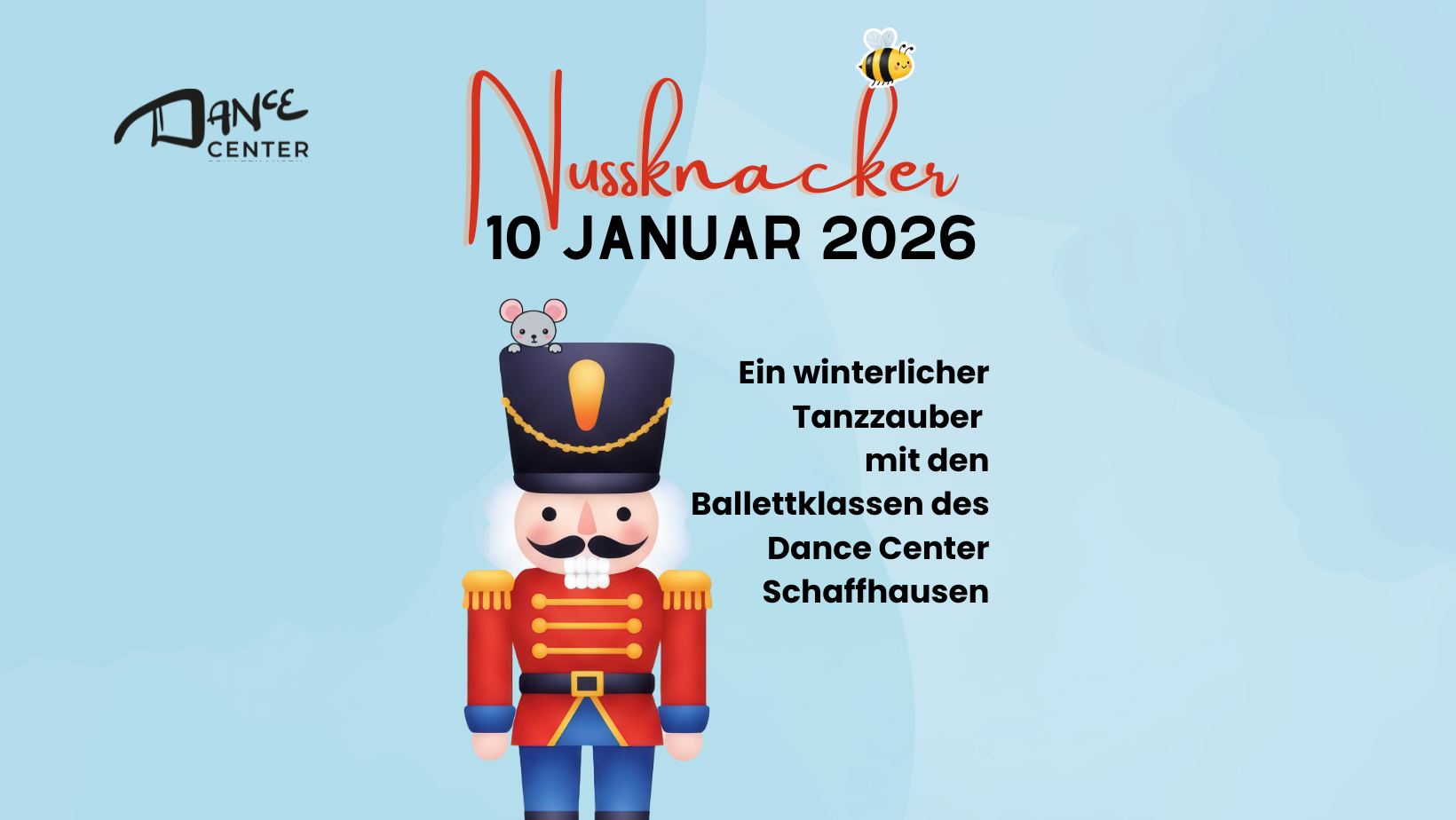 Begleiten Sie uns in die zauberhafte Welt des Balletts. Über 170 Kinder des Dance Centers Schaffhausen zeigen einen verspielt neu erzählten „Nussknacker“, voller Fantasie und Zauber.